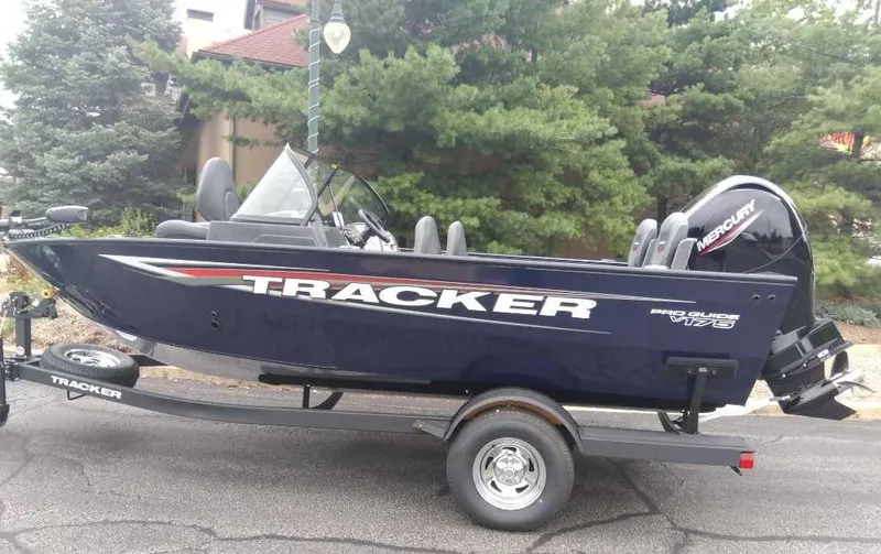 At 17' 7" long, the TRACKER® PRO GUIDE™ V-175 WT is bursting with strength and stability or peace of mind in all weather. With its generous beam, this boat provides ample space for anglers to move around comfortably while casting or trolling. The boat boasts a 48-gallon timed, aerated livewell to keep your catch spunky. Additionally, the PRO GUIDE V-175 WT offers extensive storage options from dedicated rod holders to tackle stows to a convenient console glove box. A stout Mercury outboard delivers instant acceleration, while the Garmin® Striker 4 fishfinder gives you detail on what's below. A Minn Kota® trolling motor provides stealthy motivation. The PRO GUIDE V-175 WT is backed by the TRACKER PROMISE-the industry's leading factory warranty for aluminum boats. This comprehensive warranty includes a lifetime hull/structure/deck warranty, along with 5 years of bow-to-stern coverage, providing reassurance for the long haul.