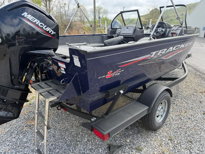 Boat equipped with: Minn Kota Terrova 80 24v Trolling Motor Bimini Top Ski Pylon Garmin 7 at Console - New 3 - Fishing Seats Glove Box Spare Tire Mercury MPP Platinum expires 02/21/2028 The 2023 Tracker Pro Guide V-175 WT is a 17' 7" aluminum deep-V fishing boat designed for rough water, featuring a 2.46 m (8' 1") beam and a 150 HP maximum rating. It features fully welded construction, a 25.5-gallon fuel tank, and a, 29-gallon livewell. Typically powered by a Mercury FourStroke outboard, this model includes a Minn Kota trolling motor. Key Specifications (V-175 WT): * Length: 17' 7" (18' 5" with swim platform). * Beam: 8' 1". * Dry Weight: 1525 lbs. * Max HP: 150 HP. * Fuel Capacity: 25.5 Gallons. * Construction: 0.100 thick aluminum alloy. [1 [https://www.boattrader.com/boat/2023-tracker-pro-guide-v-175-wt-8886533/]] Key Features: * Deep-V Hull: Designed for a smooth, dry ride in larger lakes and rougher conditions. * Fishing Ready: Features a 29-gallon aft aerated livewell and a separate bait bucket. * Storage: Includes dedicated rod storage and a Versatrack gunnel accessory system. * Console: Port and starboard consoles with tempered safety glass walk-thru windshields.