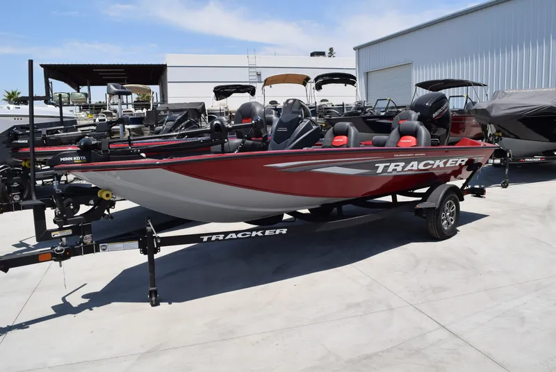 - NEW 1-piece rotomolded TRACKER® console w/built-in controls, storage pocket & windscreen
