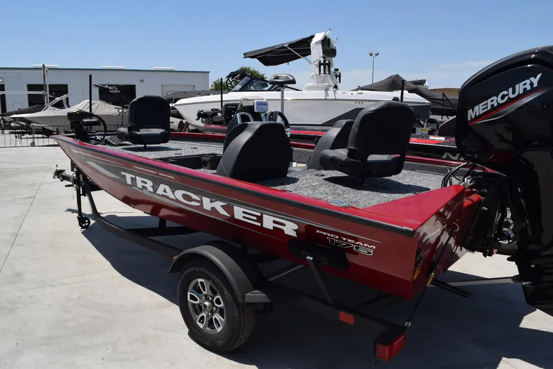 The TRACKER PRO TEAM 175® is one of the most value- and feature-packed boats in the TRACKER stable, and also one of our most popular models. All-welded construction offers superior strength that carries huge decks, abundant storage, and a 21-gallon aerated, divided, and timed livewell. Motivation comes by way of reliable, economical Mercury® power designed for years of exciting performance. The cosole features a TRACKER touchscreen display that keeps an eye on your outboard and more, a Lowrance Hook color fishfinder, and sturdy, responsive steering. With a proven legacy and untold scores of fish caught, the TRACKER PRO TEAM™ 175 delivers tournament-ready fishability and performance with unbeatable value.