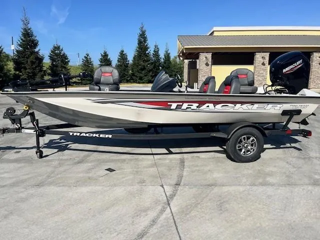 The TRACKER PRO TEAM 175® is one of the most value- and feature-packed boats in the TRACKER stable, and also one of our most popular models. All-welded construction offers superior strength that carries huge decks, abundant storage, and a 21-gallon aerated, divided, and timed livewell. Motivation comes by way of reliable, economical Mercury® power designed for years of exciting performance. The cosole features a TRACKER touchscreen display that keeps an eye on your outboard and more, a Lowrance Hook color fishfinder, and sturdy, responsive steering. With a proven legacy and untold scores of fish caught, the TRACKER PRO TEAM™ 175 delivers tournament-ready fishability and performance with unbeatable value.