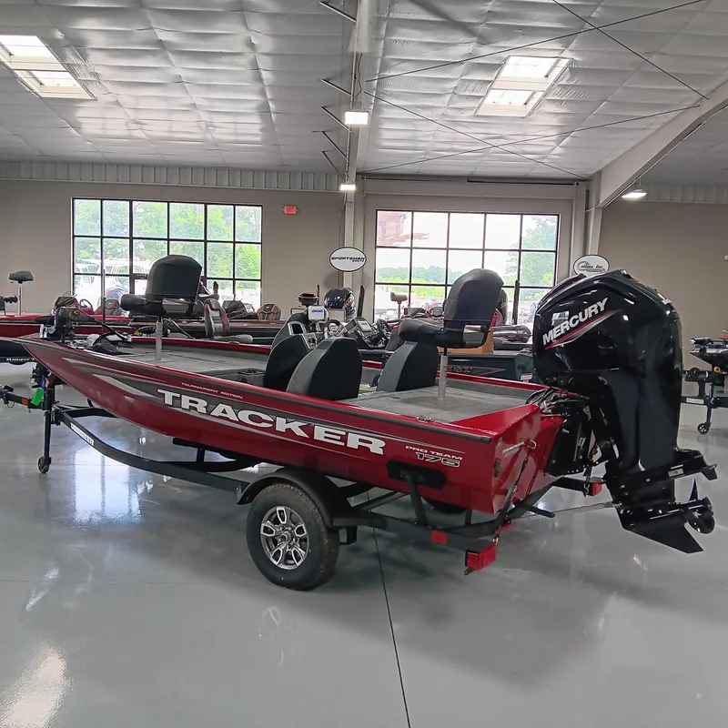 The TRACKER PRO TEAM 175® is one of the most value- and feature-packed boats in the TRACKER stable, and also one of our most popular models. All-welded construction offers superior strength that carries huge decks, abundant storage, and a 21-gallon aerated, divided, and timed livewell. Motivation comes by way of reliable, economical Mercury® power designed for years of exciting performance. The cosole features a TRACKER touchscreen display that keeps an eye on your outboard and more, a Lowrance Hook color fishfinder, and sturdy, responsive steering. With a proven legacy and untold scores of fish caught, the TRACKER PRO TEAM™ 175 delivers tournament-ready fishability and performance with unbeatable value.