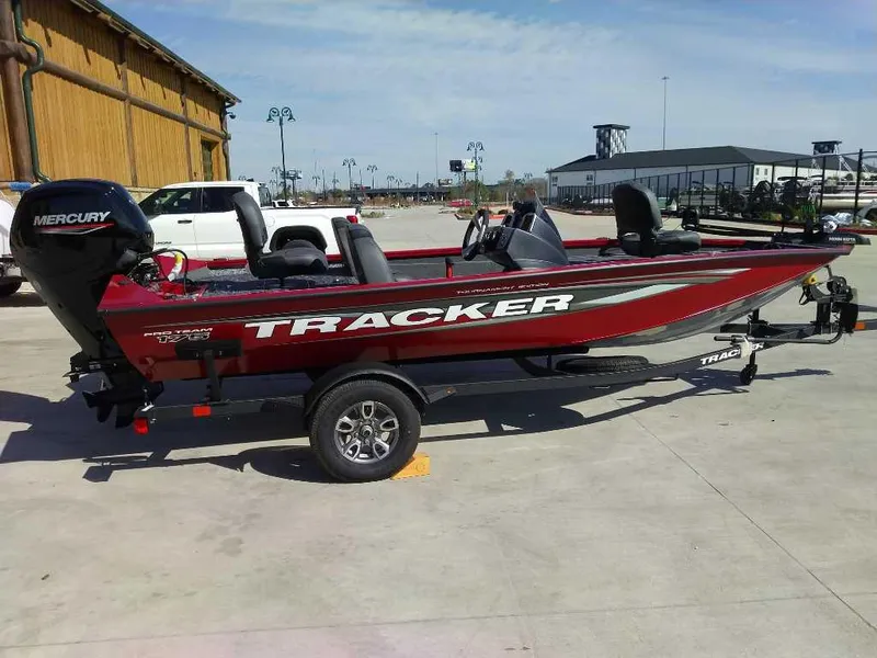 The TRACKER PRO TEAM 175® is one of the most value- and feature-packed boats in the TRACKER stable, and also one of our most popular models. All-welded construction offers superior strength that carries huge decks, abundant storage, and a 21-gallon aerated, divided, and timed livewell. Motivation comes by way of reliable, economical Mercury® power designed for years of exciting performance. The cosole features a TRACKER touchscreen display that keeps an eye on your outboard and more, a Lowrance Hook color fishfinder, and sturdy, responsive steering. With a proven legacy and untold scores of fish caught, the TRACKER PRO TEAM™ 175 delivers tournament-ready fishability and performance with unbeatable value.