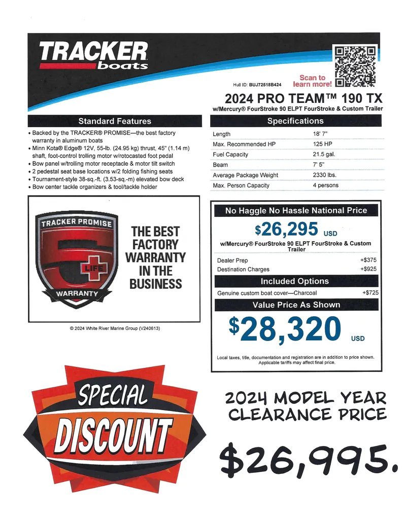 2024 Tracker Pro Team 190 TXSold