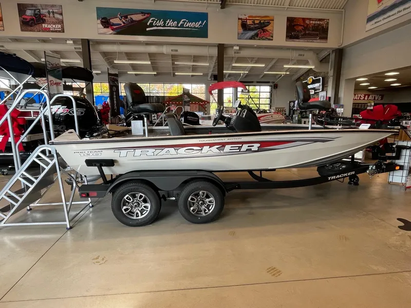 The TRACKER® PRO TEAM™ 195 Tournament Edition is the flagship bassin' machine of the PRO TEAM lineup, and designed to take your fishing to new heights. This large, fast, all-welded boat is packed with hand-selected features that will help you to dominate the leaderboard. With a tournament-proven layout, dual Lowrance® fishfinders, an upgraded Minn Kota® trolling motor with two batteries, a spacious center tackle storage and dual 8' bow rod boxes, you'll have everything you need for a successful day on the water. To add to its impressive features, the TRACKER® PRO TEAM™ 195 Tournament Edition now includes a state-of-the-art Tracker touchscreen gauge display. This display brings a new level of convenience and control to your fishing adventures, allowing you to access crucial information and features with ease. Paired with the smooth and reliable 150 hp Mercury FourStroke outboard engine, this boat is built for top notch performance on the water. And with the TRACKER PROMISE providing the best factory warranty in aluminum boats, you can fish with confidence knowing you're backed by the best in the industry. The TRACKER® PRO TEAM™ 195 Tournament Edition is truly the ultimate fishing machine for anglers who demand the best.