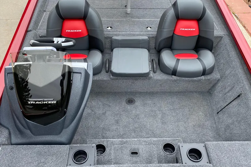 - NEW 1-piece rotomolded TRACKER® console w/built-in controls, storage pocket & windscreen