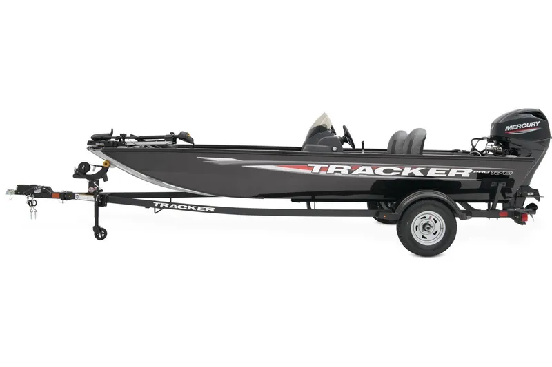 The TRACKER® PRO 170 is meticulously designed to strike the perfect blend of ample fishing space, easy towing and storage convenience and a host of tournament-ready features. Featuring a Mercury® outboard motor, Minn Kota® Edge trolling motor, Garmin® Striker 4 color fishfinder, aerated livewell, VERSATRACK® accessory-mounting channels and more, this boat is loaded with the essentials for a productive outing. Each PRO 170 is built with meticulous quaity for peace of mind and a lifetime of memories and features rich, durable color from our next-gen DIAMOND COAT 3.0 paint process that stays vibrant with minimal upkeep. From its thoughtful design to its comprehensive features, the PRO 170 is a testament to TRACKER's commitment to providing anglers with the tools they need for success on the water. Cast with confidence with the TRACKER® PRO 170 under your feet.