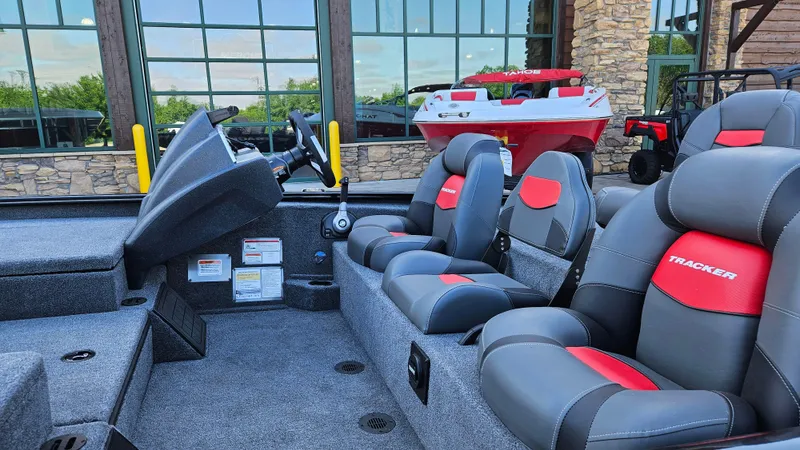 - 1-piece rotomolded TRACKER® console w/built-in controls, storage pocket & windscreen
