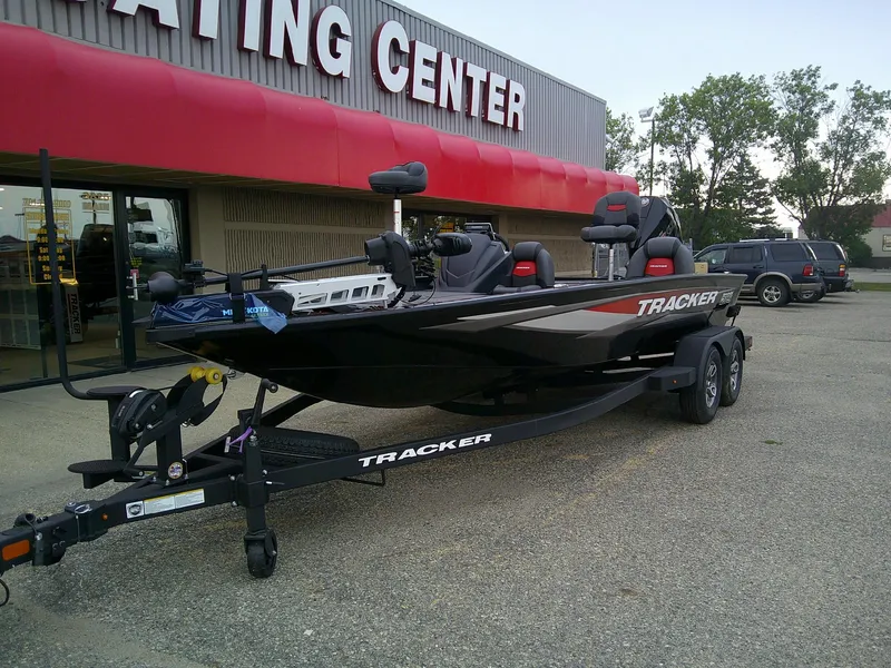 • 1-piece rotomolded TRACKER® console w/built-in controls, storage pocket & windscreen
