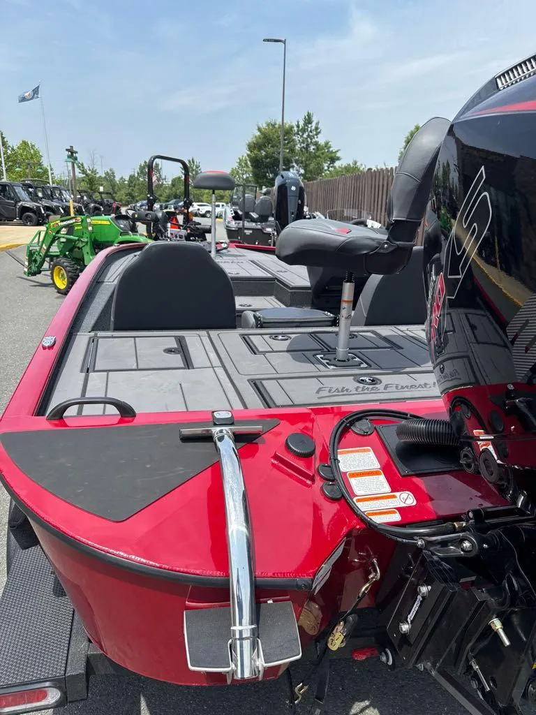 The Savage 215 carries up to 250 horses and boasts a finely-tuned hull that takes advantage of every last one of 'em. The patent-pending POWER CURVE™ hull delivers an instant hole shot, and as RPMs ramp up, the tough-as-nails .125"-thick aluminum hull gives precise feedback to the wheel. At the 70-plus MPH top end, this new TRACKER® leads the pack. On the trolling motor, you'll find a gargantuan front deck covered in optional DURATRACK marine flooring, replete with expansive storage boxes and a pro-designed layout that keeps gear handy, safe, and organized. The cockpit is decked-out with big-screen electronics, a TRACKER digital touchscreen display (instead of old-school gauges) and handmade seating designed to tackle the elements in comfort.