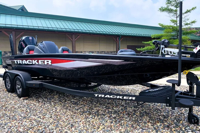 The Savage 215 carries up to 250 horses and boasts a finely-tuned hull that takes advantage of every last one of 'em. The patent-pending POWER CURVE™ hull delivers an instant hole shot, and as RPMs ramp up, the tough-as-nails .125"-thick aluminum hull gives precise feedback to the wheel. At the 70-plus MPH top end, this new TRACKER® leads the pack. On the trolling motor, you'll find a gargantuan front deck covered in optional DURATRACK marine flooring, replete with expansive storage boxes and a pro-designed layout that keeps gear handy, safe, and organized. The cockpit is decked-out with big-screen electronics, a TRACKER digital touchscreen display (instead of old-school gauges) and handmade seating designed to tackle the elements in comfort.