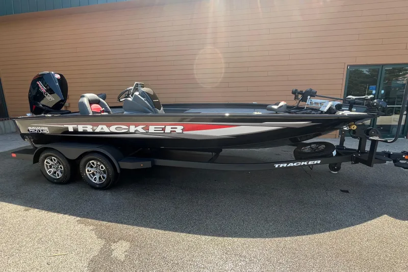 What do you get when you combine a legendary history of fishability with industry-leading value and a whole lotta passion for performance? The TRACKER® Savage 215, a next-generation aluminum bassin' rig with all the features, performance, and capability of the big leagues-without the big league price tag. The Savage 215 carries up to 250 horses and boasts a finely-tuned hull that takes advantage of every last one of 'em. The patent-pending POWER CURVE™ hull delivers an instant hole shot, and as RPMs ramp up, the tough-as-nails .125"-thick aluminum hull gives precise feedback to the wheel. At the 70-plus MPH top end, this new TRACKER® leads the pack. On the trolling motor, you'll find a gargantuan front deck covered in optional DURATRACK marine flooring, replete with expansive storage boxes and a pro-designed layout that keeps gear handy, safe, and organized. The cockpit is decked-out with big-screen electronics, a TRACKER digital touchscreen display (instead of old-school gauges) and handmade seating designed to tackle the elements in comfort. Built to last, Savage 215 is an all-welded derby-dominating machine that's backed by the TRACKER PROMISE - the best factory warranty in aluminum boats. Top to bottom, front to back, the Savage 215 offers advantage after advantage that until today, would've cost a whole lot more.