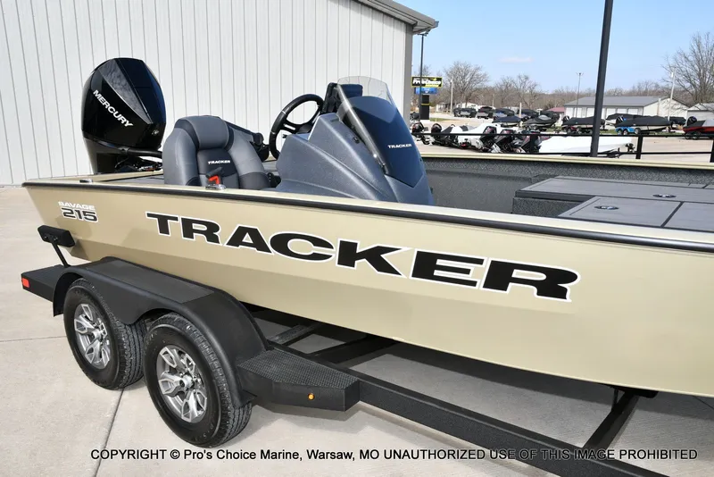 , SAVE THOUSANDS on this factory display boat!! Stock# TR1182-SD.......BRAND NEW 2026 Tracker Savage 215 powered by a 200HP Mercury 4 Stroke for only $42,900!! Comes with Dura-Trac Marine Flooring Interior.......Lowrance Eagle 7 at the console.......24v MinnKota 70# Thrust Maxxum Trolling Motor.......Hot Foot & Pro Trim.......Bile Seat & Fold Down Fishing Seat.......Manual Jack Plate.......3 Bank Charger.......Stainless Steel Prop.......Tandem Axle Trailer w/Brakes & Swing Away Tongue.......Trailer Entry Steps and Spare Tire.......Call us today before it gets away 1-877-827-2840.......Financing available with approved credit and Trades Of All Brands are always welcome at Pro's Choice Marine!! **Comes with Tracker's Lifetime structural warranty, no cosmetic warranty on this unit.** Payment is based on financed amount of posted sale price plus admin fee, less 10% down payment and 7.99% APR for 180 months with approved credit. Taxes, title, registration, additional options, accessories or upgrades are not included and are in addition to the total purchase price.