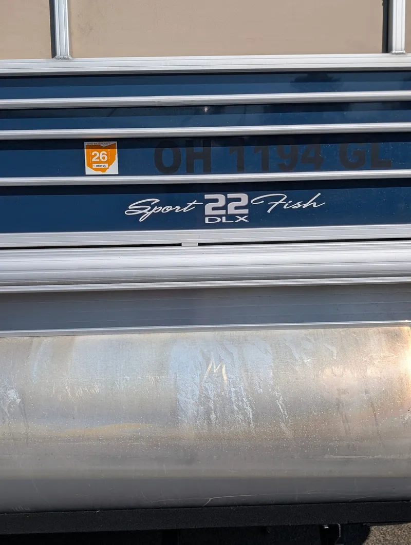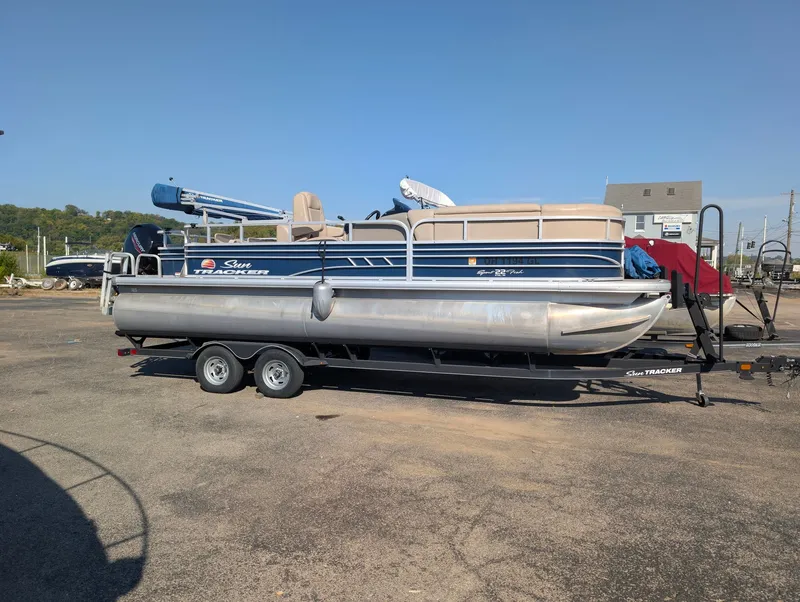 2020 Tracker Sport 22DLX Fish, Tracker 22' Fishing Pontoon Mercury 4 stroke 150 Hp engine Stainless prop ONLY 80Hrs. Gramin Echomap 93SV fishfinder with extended transducer Upgraded flooring Diamond stich seats Tandem axle trailer with brakes Spare tire Rod saver locker Live well 2 fishing seats Bimini top Full cover
