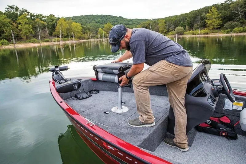 - 5 pedestal seat base locations w/2 movable, 360°-swivel & lock, folding fishing seats