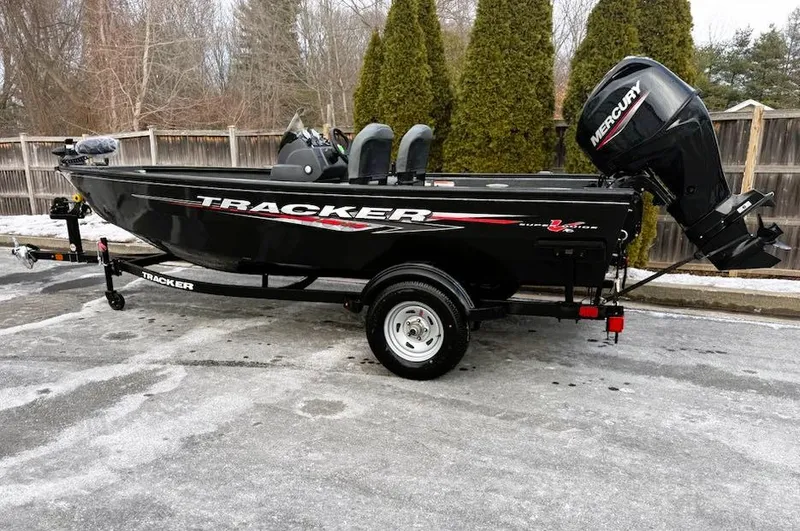 The TRACKER SUPER GUIDE V-16 SC is brimming with features, value, and space. The side console design optimizes space and storage to give a bigger presence. The all-welded hull is robotically welded for maximum strength and precision, giving you peace of mind when the swells kick up. Multiple seating locations let you tailor the interior for the day at hand, and comfort comes by way of our legendary handmade folding fishing seats. This V-16 SC comes standard with a powerful and efficient Mercury FourStroke outboard engine and a custom-matched GALVASHIELD Impact trailer for smooth, safe transportation. And with the TRACKER PROMISE backing it up, you can enjoy peace of mind knowing you have the best factory warranty in aluminum boats.