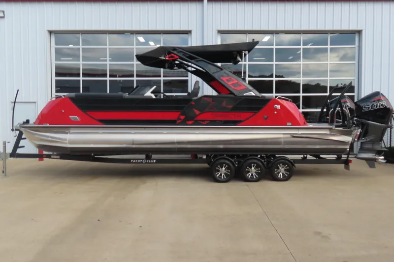 3.0 + performance package, Atlas jack plates, 98 gallon direct fill fuel tank, double bimini, adjustable billet arm rests, billet gates, infinite reclining high back helm chair, raised logos, led docking lights, double arm hinges for easy access to seat storage, three batteries with switch, built in battery charger, helm courtesy light, lighted in floor storage, power assist steering pump, powered sport arch, sport ski tow bar (color matched), stainless ladder telescoping ladder, stainless steel pop-up cleats, stainless steel rail braces, stainless steel rub rail insert, tilt out trash receptacle, washdown in stern, walkthrough glass windshield, Mercury DTS with active trim, RGB led floor, table & seat base lights, RGB lighted cupholders, RGB under deck lights, RGB under water lights, RGB exterior rail lights, upgraded Roswell sound system with 4 10" tower speakers and transom remote, washdown pump, sink, dual Simrad touchscreens, wireless charger, Isotta steering wheel with paddle switches for trim and jack plates.