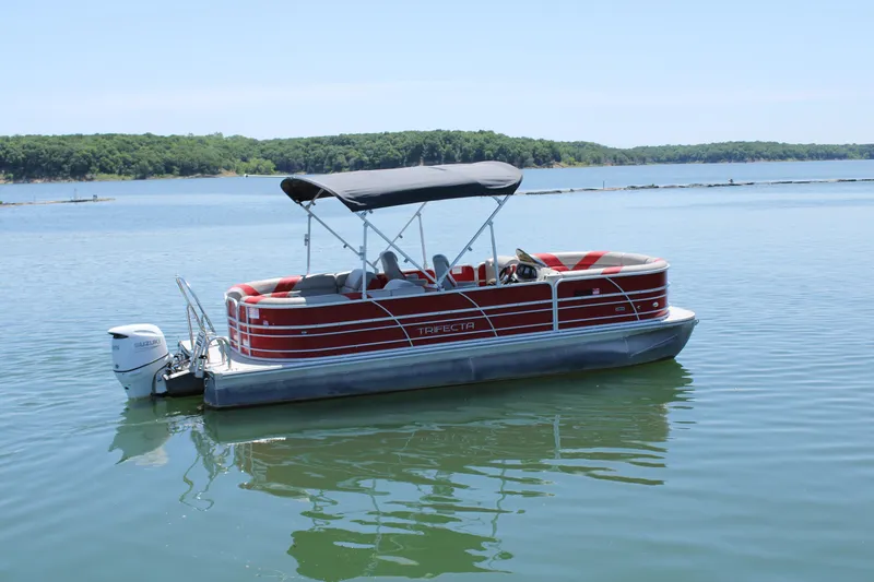 2022 Trifecta 24RF LE with a Suzuki 115 HP white outboard. This used pontoon is clean, reliable, and ready for the water. The bold red exterior paired with the white motor gives it a standout look, while the spacious 24-foot layout comfortably seats up to 12 passengers. Smooth handling, premium construction, and Trifecta's trusted quality make this the perfect boat for cruising, entertaining, or family fun - at a great value.