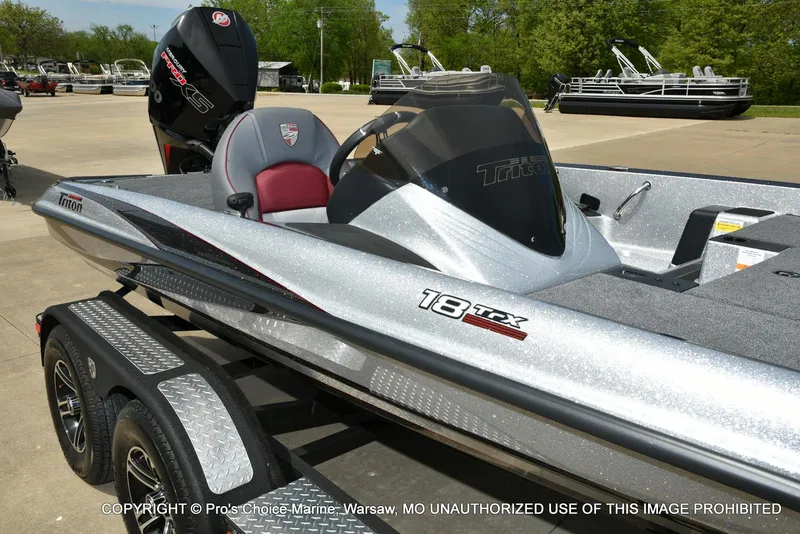 , Stock# P631.......2024 Triton 18 TRX powered by a 200HP Mercury Pro-XS 4 Stroke with ZERO hours and engine warranty until 6/22/2029 for only $43,900!! Comes with a Lowrance HDS-9 Pro at the console.......Lowrance HDS-9 Pro at the bow.......24v MinnKota 80# Ultrex w/US2.......Hot Foot & Pro Trim.......Boat Cover.......Bike Seat & Fold Down Fishing Seat.......Tilt Steering Wheel.......Manual Jack Plate.......Tandem Axle trailer w/Brakes and Swing Away Tongue.......Call us today before it gets away 1-877-827-2840.......Financing available with approved credit and Trades Of All Brands are always welcome at Pro's Choice Marine!! Payment is based on financed amount of posted sale price plus admin fee, less 10% down payment and 8.99% APR for 180 months with approved credit. Taxes, title, registration, additional options, accessories or upgrades are not included and are in addition to the total purchase price.