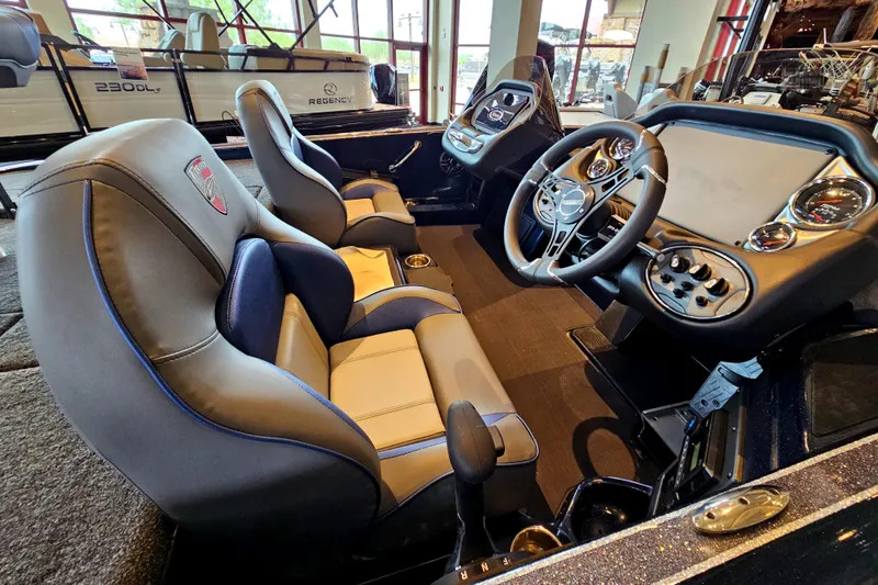 • Padded Dash with Tachometer, Speedometer, Voltmeter, Fuel, Trim and Water-Pressure Gauge