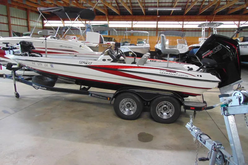 Summary TableFeatureDetails ModelTriton TR-196 (also seen as TR-196 DC) Length~20 ft Beam~7'9" Hull MaterialFiberglass EngineSingle 150 HP outboard Weight~1,910-1,950 lbs Ride & HandlingDry ride, good rough-water capability, requires some familiarity to handle well Deck LayoutSpacious with good reach for storage; front seat blocks walking space when in use