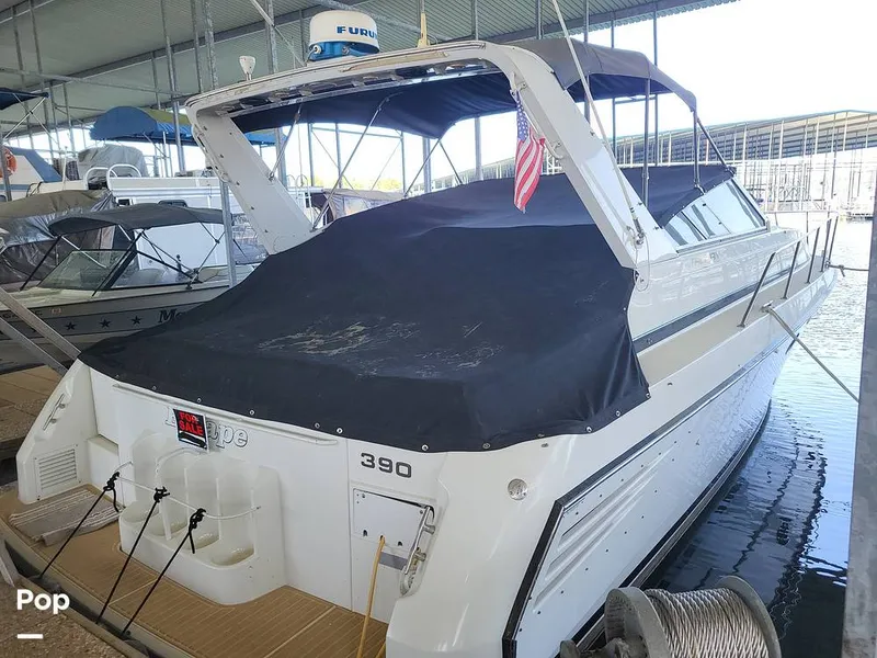 This is the same hull as the 1993-1994 Trojan 370 Express, but the extended swim platform increased her length and also changed her name to Trojan 390 Express. In 1998 she was renamed the Trojan 400 Express.