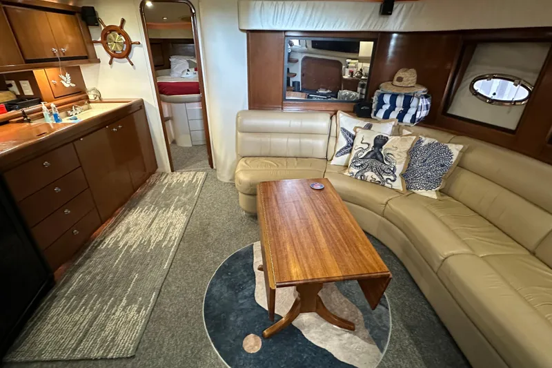 VERY SMART 3 STATEROOM EXPRESS! - T. Diesel inboards & a 9kw Kohler diesel generator. Full galley, very roomy salon, 2 heads, hard doors on staterooms...the master has a walk around queen, cherry cabinetry and a huge cockpit w/transom door. Loads of extras including extended Hydraulic swim platform, Glendenning Engine synchronizer, crane style Davit, huge transom storage 'Trunk' w/crane stule davit and much more! The broker sold the boat to the present owners in 2023 and it went through full surveys then. It is kept in freshwater in a covered berth in the Sacramento area.