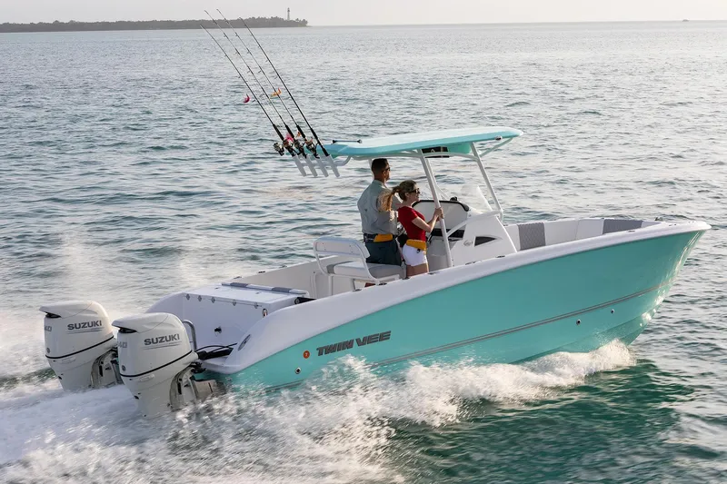 We have designed and created a Twin Engine Cat that will rise to every occasion and take you places in Style and Comfort that Only True Boaters and Anglers understand. Our Twin Vee is the 240 CC "Center Console" PowerCat, an all composite, multi-hull boat that is an exercise in form, function, stability and ride quality. For those who want more deck space to fish, entertain or cruise without breaking the bank, the 240 Center Console PowerCat is what you have been waiting for. Exceptional comfort with a premium interior makes every boating experience enjoyable whether you're heading out for a day trip or escaping on an adventure to get away from it all. Time is your greatest luxury, spend it on a Twin Vee 240 Center Console PowerCat.