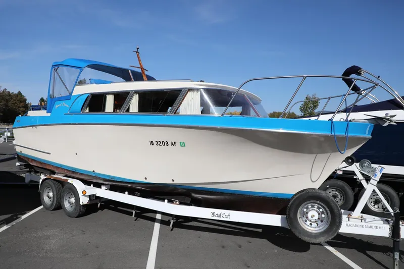 1960 Uniflite 27, The 1960 Uniflite 27 represents early American fiberglass boatbuilding excellence, showcasing durability, craftsmanship, and seaworthy performance that helped define the Uniflite legacy. Built using one of the first all-fiberglass hull constructions of its era, the 27 offers exceptional strength, stability, and longevity. Its semi-displacement hull delivers a balanced ride suitable for both cruising and coastal use. The interior layout typically includes a forward V-berth, compact galley, enclosed head, and convertible dinette, reflecting thoughtful space utilization for extended outings. Powered by inboard propulsion, the Uniflite 27 combines reliable performance with a solid, time-tested design that underscores Uniflite's reputation for rugged, quality-built boats.