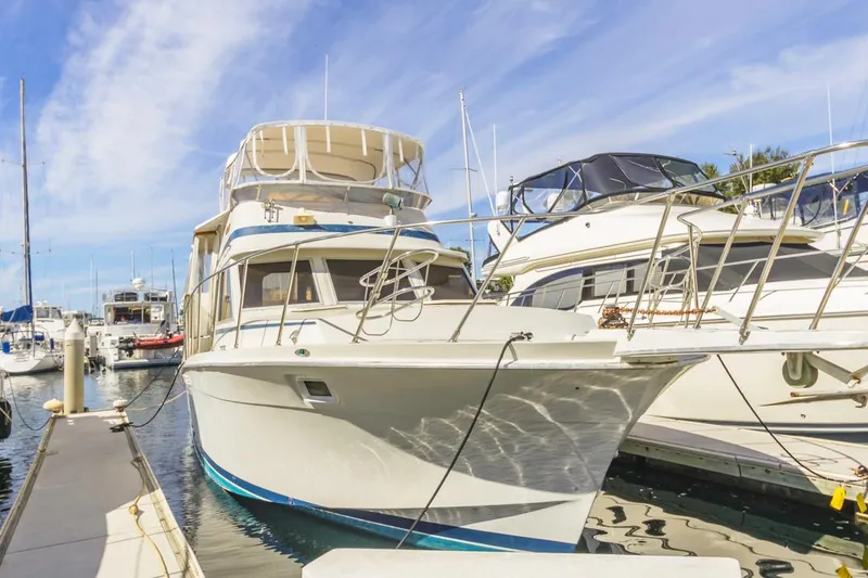 This Uniflite 41 is located in Marina del Rey, CA an ideal choice for coastal cruising or weekend trips to Catalina! This well-built vessel combines comfort and durability, featuring spacious living quarters that make it perfect for a home away from home or even as a permanent liveaboard setup. Equipped with reliable Detroit diesel engines, the Uniflite 42 offers efficiency and peace of mind for longer journeys. With a roomy aft cabin, full galley, and multiple sleeping areas, it's both a cozy retreat and a dependable cruiser. Don't miss the chance to own this classic, versatile vessel.