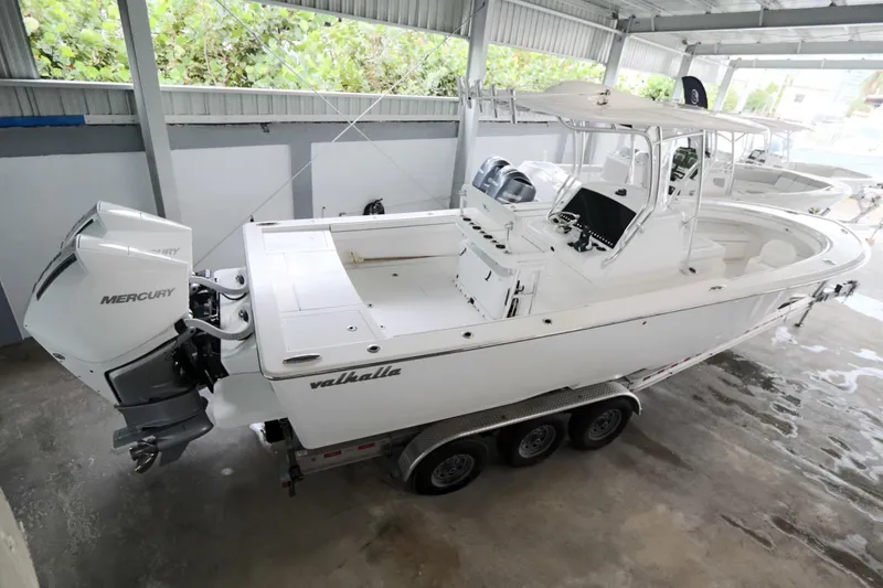 The 2025 Valhalla 29 delivers the perfect blend of performance, style, and luxury craftsmanship that has made the Valhalla name synonymous with premium center consoles. Powered by twin Mercury 300 hp V8 Verados, this boat offers exhilarating speed, effortless handling, and outstanding efficiency, whether you're chasing fish offshore or cruising the coastline in comfort. Built by the Viking Yacht Company, the V-29 reflects their legendary attention to detail, combining rugged capability with refined fit and finish throughout.
