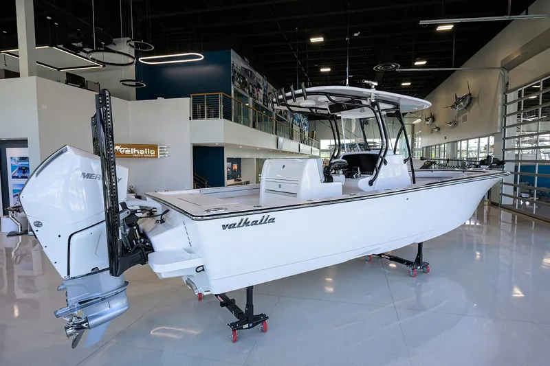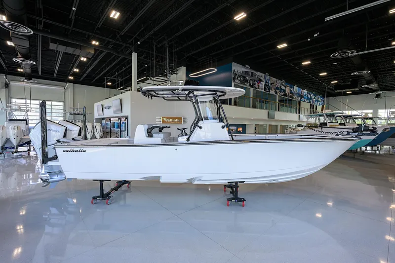 The addition of the V-29 Hybrid and the V-28 Bay boat allows Valhalla Boatworks (VBW) to continue to broaden its premium center console lineup that was launched in 2019 with the V-33, V-37 and V-41. The Viking company went bigger with its next two center consoles, the V-46 in 2021 and the V-55 in February 2023. And now the industry leader has sunk its teeth into the coastal/ inshore boat market with a pair of high-end center consoles that share V Series traits but also possess their own purposeful characteristics. The V-29 Hybrid is the most versatile center console in its size range, melding the qualities and features of our bay boat and V-33 center console. That means you have a shallow enough draft to fish the flats and the size and freeboard to head offshore. Bigboat options combine with bay-boat accessories. Add Valhalla build quality, engineering and enhancements and you've got yourself a true game-changer. As hybrids go, the V-29 is big with a 29' 6" hull length and a 9' 8" beam. Like the V-28, her size contributes to excellent ride quality and extensive range. You also get more horsepower and fuel capacity, storage and interior volume, deck space and fishability, and room for standard and optional equipment. The goal with the V-29 Hybrid was to design a hardcore fish boat with unmatched versatility, one that can work the inshore reefs, fish the flats, hit the sandbar and cruise to a waterfront restaurant for dinner all in one day. The V-29 certainly lives up to her "Hybrid" name. Valhalla features - such as available Seakeeper, bow thruster, thru-stem claw anchor with windlass, Release Marine seating and an electric head with overboard discharge - merge with must-have equipment for bay boats such as trolling motors, power poles and hydraulic jack plates. The V-29 also features 180 gallons of fuel capacity, so range is maximized with very economical fuel consumption with twin Mercury V6 225 4 strokes, twin Mercury V8 300 Verados or twin Yamaha V6 350s. The V-29 has a 22-degree deadrise at the transom and rides on the patented Michael Peters Yacht Design Stepped-V Ventilated Tunnel hull bottom, which reduces drag while increasing speed, efficiency and stability. The V-29 will excel on the tournament circuit or as a luxury tender to motor yachts, sportfish boats or even larger Valhallas due to its fish-focused layout that does not sacrifice comfort. The aft flip-up bench seat, numerous helm seating options (everything from a standard leaning post with rod holders and slide-out cooler to Release Marine teak helm seating with outboard armrests and flip-up bolsters), console lounge with armrests and available forward bench seats with teak backrests tout her luxury. Premium upholstery with available Diamond/Bentley stitching and faux teak toe rail add to the yacht finish of the V-29. We feature Gemlux rod holders and hardware. And of course, it wouldn't be a Valhalla without built-in toekick space outboard and around the console and seating modules. The V-29 features dual 28-gallon live wells on the aft casting deck and an optional helm seating module with 45-gallon live well. The V-29 also includes two insulated in-deck fish boxes in the cockpit that plumb to a Whale Gulper pump, two midship