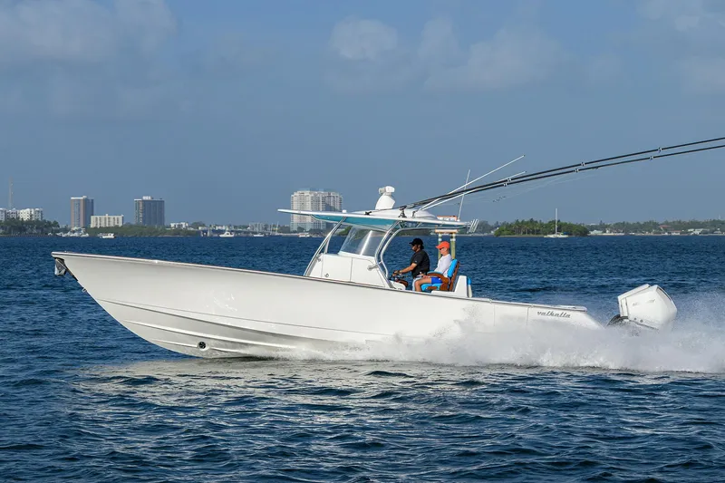 Introducing this 2022 Valhalla Boatworks V-37, a stunning center console that seamlessly combines performance and elegance. Powered by three 300-horsepower Mercury V8 Verado outboards with Mercury Platinum Warranty through November of 2029, this V-37 offers exhilarating speed and agility, making it perfect for both leisurely cruises and offshore fishing. Designed with comfort in mind, this boat features a well-appointed head to enhance the onboard experience, along with a comfortable mezzanine, upgraded Release Marine helm seating, and more. Its thoughtful layout allows for easy movement and accessibility, whether entertaining guests or enjoying a day on the water. Whether you're fishing, cruising, or soaking up the sun, the Valhalla Boatworks V-37 is built to deliver an unforgettable experience. This used model presents a fantastic opportunity to own a premium vessel that excels in both style and performance. Read below for additional features and details.