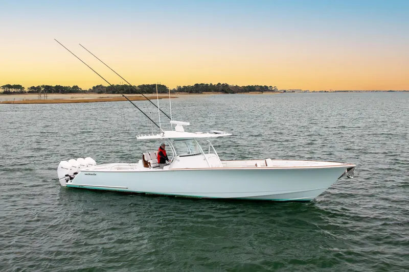 The Valhalla V-41 is a high-performance offshore center console built by Valhalla Boatworks, a Viking Yachts company, designed to deliver tournament-level fishability with luxury comfort. Featuring a stepped deep-V hull, the V-41 provides a fast, stable, and smooth ride offshore with impressive efficiency and range.