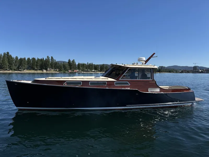 2003 Van Dam Sedan Cruiser, "How Swede It Is", (formerly known as "Blue Star"), is a 38' Sedan Cruiser inspired from the downeast style boats- timeless classics. She was designed with speed and efficiency in mind. With an approximate 350-mile cruise range, her twin 440HP Yanmar diesels can take you to the furthest reaches of the water. With twin screws and a bow thruster, you'll be able to navigate the tightest slip & ally with ease. Designed by Van Dam Custom Boats, she was made for coastal cruising, 2-4 aboard. Any guests on deck will notice her craftsmanship and flawless details. From the inlaid dinette table to the quarter sawn maple sole, you cannot help but marvel over the precision at hand. The exterior design and ride are as exceptional as the interior joinery. How Swede It Is can shoulder heavy seas and cut through chop when things get nautical. With an updated electronics package, genset and modern conveniences aboard, you'll find it easy to navigate to a remote cove and drop the hook. How Swede It Is was created so her passengers could enjoy all the comforts of home while on the water at peace. She is a perfect blend of raw power, classic design, and timeless elegance. "How Swede It Is" received a major refit from the craftsman at Van Dam in 2021. New paint, complete refinish on the bright work, cockpit & interior cushions, new swim platform, FreedomLift and a cockpit sun shade to name just a few of the upgrades given to her by the same craftsman that built her in 2003.
