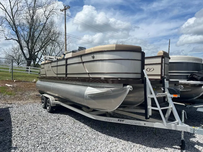 This boat also has a power bimini top, ski tow pylon, stainless steel prop, and 27" pontoons.