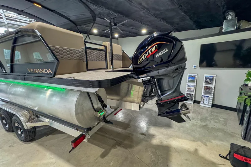 he 2026 Veranda VR265RC, powered by a Yamaha 250 HP motor, blends luxury, innovation, and performance into one of the most versatile pontoons on the water. Designed with Veranda's patented all-aluminum, all-welded interlocking deck system, this 27-foot pontoon delivers strength, durability, and a smooth ride. With upscale features and thoughtful design, the VR265RC is built for family outings, entertaining friends, or enjoying watersports in comfort and style.