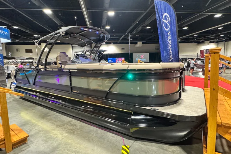 This all new design for 2026 is loaded with tons of space. It has the tower option with integrated bimini and the Versa Lounger Island swingback design in the center of the stern area for a really cool layout. It also has dual Lilypad ladders off the stern and a powerful Yamaha 250 hp Super High Output performance motor. It is loaded with lighting inside, outside and underwater as well as a Garmin touchscreen and awesome stereo with amps and sub. It is loaded. Call for more details.