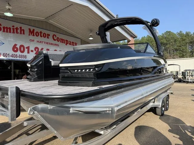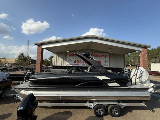 2026 Veranda V One 25, V One. The instant a pilot reaches that critical V speed is the moment your heart beats faster and excitement and exhilaration begin to take flight. Imagine yourself at the helm of Veranda Luxury Pontoons 25 tri-toon flagship. The striking fiberglass exterior will turn heads on the lake, while the geometrically patterned interior upholstery will transform your passengers stress and worry into utter bliss. Experience the engineering accuracy of construction and the impeccable pairing of state-of-the-art audio, lighting, and navigational features positioned on top of our Patented All-Aluminum All-Welded Interlocking Floor System. The control tower is calling. Are you ready to take flight?Veranda Luxury Pontoons, the innovator of the Patented All-Aluminum All-Welded Interlocking Deck System, is proud to add power to its already stunning V One performance pontoons. The 27 V One Twin Engine, powered exclusively by Yamaha, doubles the excitement by hosting twin Yamaha F300 offshore outboards. The striking fi