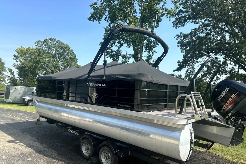 Introducing the 2021 Veranda Vista 22RC, a stunning used pontoon boat that combines elegance with performance. With an overall length of 23.67 feet, this boat is designed for both comfort and adventure on the water. Crafted from durable aluminum, its pontoon hull shape ensures stability and smooth sailing, making it perfect for leisurely cruises or exciting outings. Powered by a robust 90 hp Yamaha Vmax Fourstroke outboard engine, this vessel promises reliable performance and efficiency. The thoughtful design includes ample space for relaxation and entertainment, making it an ideal choice for gatherings with family and friends. Whether you're exploring serene lakes or enjoying a day on the river, the Veranda Vista 22RC offers a delightful boating experience, showcasing the perfect blend of style and functionality. Embrace the joy of the water with this exceptional pontoon boat!