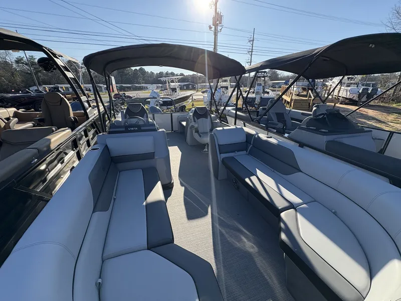 TRAILERS ARE NOT INCLUDED WITH OUR PONTOONS DUE TO SO MANY CUSTOMERS HAVE DOCKS SINGLE AXLE STEEL TRAILER $2999.00 SINGLE AXLE GALV. $3495.00 DOUBLE AXLE STEEL TRAILER $3995.00 DOUBLE AXLE GALV TRAILER $4795.00 CUSTOM VERANDA HEAVY DUTY ALL ALLUMINUM TRAILER $6999.00 IF AVALIABLE 2025 VERANDA VS22RC WITH YAMAHA F200 4 STROKE STEREO AND BOAT COVER INCLUDED Why choose the Veranda Luxury Pontoons 2025 Vista Sport RC?The saying "good things come in threes" hits the bullseye with the new Vista Sport. Customers can choose from 20, 22, and 25-foot lengths and black, island green, or navy accent colors. A 25" Triple-toon Performance Package comes standard and provides greater horsepower and performance. The all-new Vista Sport is ideal for water sports enthusiasts due to the hydraulic steering, tow bar, boarding ladder, and optional Extreme Tower Package. A bundle of luxury standard features will maximize your comfort and entertainment, including reclining chairs and four-corner couch seating in Dolphin Grey, an open storage area under the console for the cooler, a Kicker Bluetooth audio system with four 6.5" Clarion speakers and an 8" Bazooka subwoofer, and RGB controller with lighted cupholders at the helm. Captains will appreciate the black powder-coat aluminum and SeaDek-lined raised helm platform and courtesy light when navigating. The new Veranda Vista Sport is your affordable and stylish passport to water sports excellence!This one is powered by a Yamaha 200 4 stroke engine!