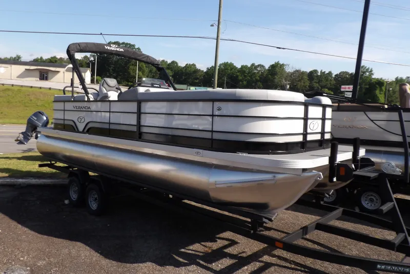 New 2025 Veranda Vista Sport VS22RC Tritoon powered by a Yamaha 150HP 4-Stroke outboard motor. The Vista Sport is a brand-new offering from Veranda for 2025, utilizing their patented all welded aluminum deck. This series is an incredible value, and in this case offering a 22-foot tritoon with at a nationally advertised set price of $55,995. This beautiful new Veranda can be delivered to your dock on the lake, or we have a selection of tritoon trailers available for purchase. For the latest in pricing and incentives give us a call at Eclipse Marine Seneca (864) 653-6767 or stop in and see us at 305 US Hwy 123 bypass, Seneca.Patented All-Aluminum All-Welded Interlocking Deck SystemFiberglass Console with Designer DashHOOK 4X Graph PlotterHorn with Stainless GrillMarine CoolerReclining Helm SeatReclining Port Captain's ChairL.E.D. Nav and Anchor LightsL.E.D. Courtesy Light on ConsoleWoven Grey Vinyl FlooringSpeed, Tach, Fuel, and Trim GaugesStainless 6? Deck CleatsStainless Quick Release Bimini HardwareLifting StrakesIntegrated Performance Motor PodRatchet Mooring CoverTrash Receptacle25? Triple-toon Performance PackageBluetooth Stereo AudioBazooka Amplified Bass TubeFour-corner Couch SeatingBlack Powder Coat Fence RailsRear Entry GateRotational Molded Wood-Free Seat Bases w/Water Management and StorageBlack Powder Coat Bimini FramesBlack Bimini CanvasFull-length KeelsFull-length M/Saddle BracketsHydraulic SteeringIsland Green, Navy, or Black and Grey Exterior AccentsBlack Powder Coat Stainless Tow BarStainless Boarding LadderBlack Powder Coat SeaDek-lined Raised HelmRGB Controller w/RGB Lighted Cup Holders at the HelmDolphin Grey Upholstery w/Island Green, Navy, or Black AccentVS22RCApprox. Weight 2,600 lb.Deck Length 22'Overall Length 24'1?Beam 8'6?Max. Person Capacity 13 / 1,833 lb.Max. Weight Capacity 2,647 lb.Max. HP 200 hp# of Tubes & Diameter (3) 25?Fuel Capacity 55 gal.Pontoon Thickness 0.100