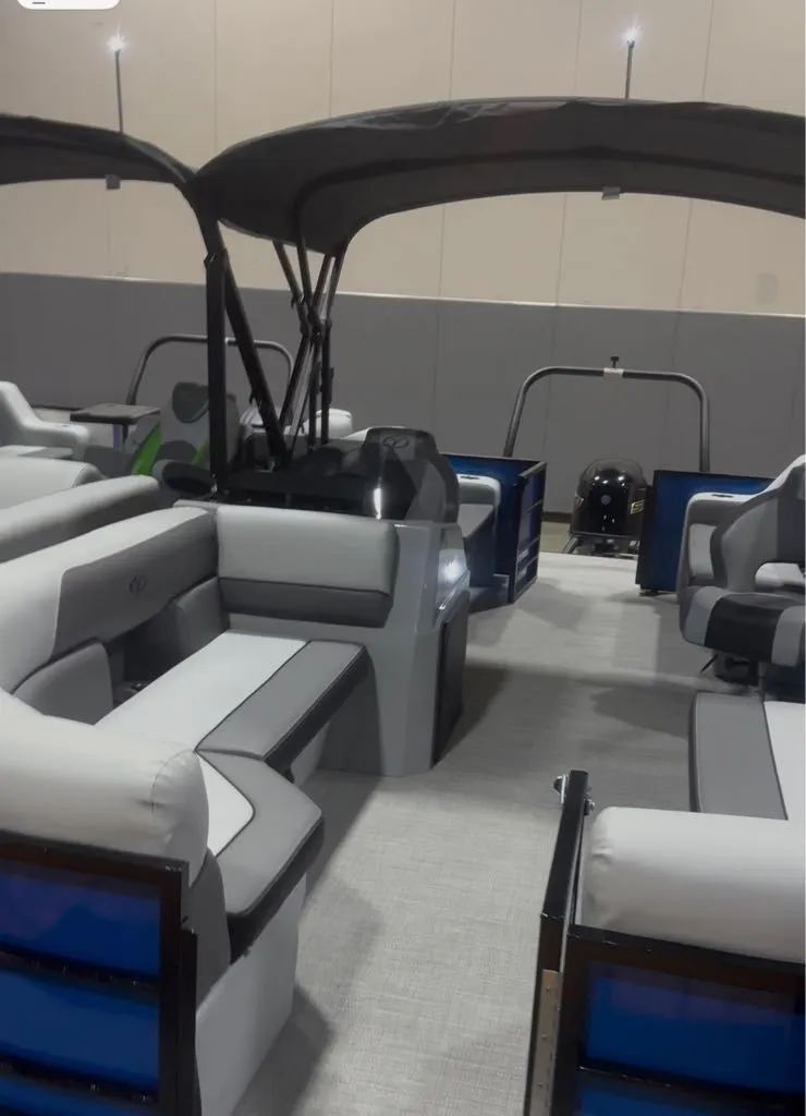 Model: 2026 Vista View 20Triple Toon 25*Flooring - Woven GreyRail Color - Black Textured Powder Coat RailsDolphin and Vault GreyAft Bimini - Vista Black BiminiPanel Color - Electric Blue MetallicBlack CoverPort Captain's ChairGarmin Striker 5CVSwim Boarding Ladder StainlessV.I.P AccessSki Tow Bar13 1/4 x 15 pitch Powertech prop (S.S.) Back Track Trailer