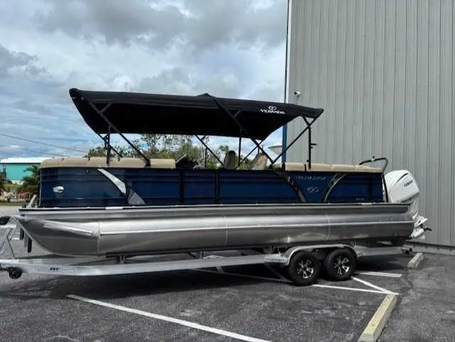 Introducing the stunning 2024 Veranda VP25RC, a new pontoon boat that promises exceptional performance and luxury on the water. With an overall length of 27.08 feet, this vessel is designed for both comfort and style, accommodating up to 15 passengers. The sleek aluminum hull ensures durability while enhancing the boat's aesthetic appeal. Powered by a robust Yamaha F300XSB2 outboard engine, delivering an impressive 300 horsepower, the VP25RC achieves a cruising speed of 34 mph and a maximum hull speed of 55 mph, making it perfect for thrilling adventures. With a remarkable range of 300 miles, you can explore the waters with confidence. Equipped with a well-appointed head and ample seating, this boat is perfect for entertaining friends and family. Experience the ultimate in relaxation and fun with the Black Label Marine, where every detail is crafted for your enjoyment on the water. Call the professionals at Black label Marine Group and let us make your boating and fishing dreams a reality. We also offer great financing to make your boat buying process smooth and easy.