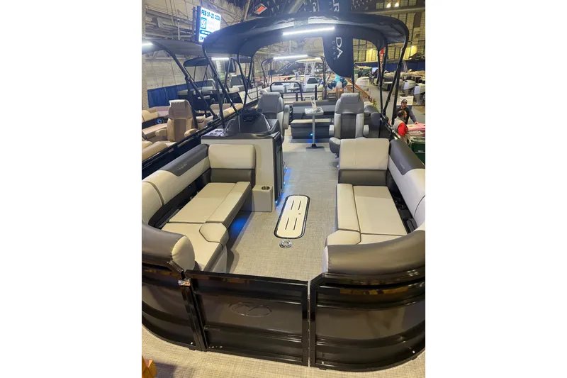 The Relax 235L and 265L, designed with a focus on comfort, space, and social connection. The all-new L Series floor plan features a spacious aft L-shaped lounge-perfect for entertaining or relaxing with family and friends. These models come loaded with premium standard features including RGB lighting, a quality stereo system, plush upholstery, and a fiberglass helm with an integrated Garmin screen. Built on Veranda's patented all-aluminum, all-welded, interlocking deck, the 235L and 265L deliver the performance, durability, and quiet ride you expect.