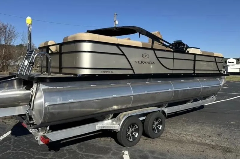 New 2025 Veranda Luxury Pontoon/Tri-Toon. VR25RC with Yamaha VMAX VF250 SHO motor with hydraulic steering and an Aluminum Trailer.