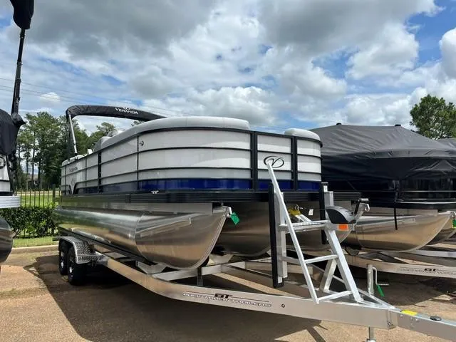 This in stock 2025 Veranda Visa Sport 22RC tri-toon is offered with a Yamaha VF115LB engine and is loaded with options: Triple Toon 25" Flooring: Compass Gunmetal Gra Rail Color- Black Rail Gray w/Navy Accent Aft Bimini-Vista Black Bimini Panel Color-Pearl White Metall Ski Tow Bar- Black Powder Coat Black Cover for Single Bimini Hydraulic Steering Swim Boarding Ladder Stainless Garmin Striker 5CV Sport Convenience Package 13 1/4 x 15 Pitch Powertech Pr Prop Upgrade Aluminum to Power