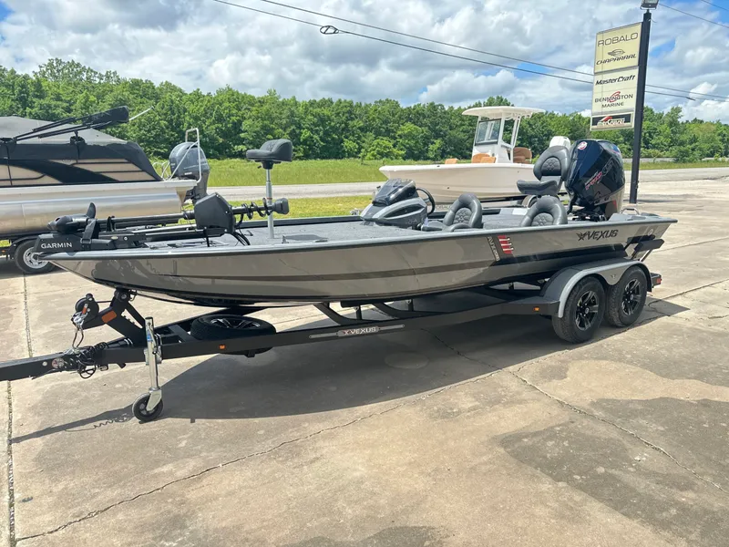 New 2025 Vexus V2 Technology AVX 2080 Stone Gray with Midnight Oil Bottom/ Powered with Mercury 200 PXS 4 Stroke RAPTOR Package (Special Hull Stripe, Badging, Color Scheme, ReFlex Cockpit Flooring, and Dr/Pa Seats) / Victor Pkg. Remote Drain Plug, Adjustable Driver's Seat Slide, Color Matched Bow & Cockpit Panels, Auto Bilge Pump to Replace Standard, (2) Trolling Motor Batteries, Color Matched Trailer Step Accent, Boat Buckle Tie Downs / Three Bank Battery Charger / Extra Gas Piston Kit (3) / (1) Bike Seat & (1) Fishing Seat / Tournament Measuring Board & Holder / Garmin EchoMap UHD 93SV Lake @ Console / Garmin EchoMap UHD 93SV @ Bow / Garmin Force 50" Trolling Motor / Tilt Hydraulic Steering / Manual Jackplate / Single Trim Lever / Hot Foot w/ Slider / Fiberglass Center Glove Box w/ Cup Holders / Custom Boat Cover / Tandem Axle Trailer with Brakes & Spare Tire. For more information contact Clint in McAlester at 918-423-8848