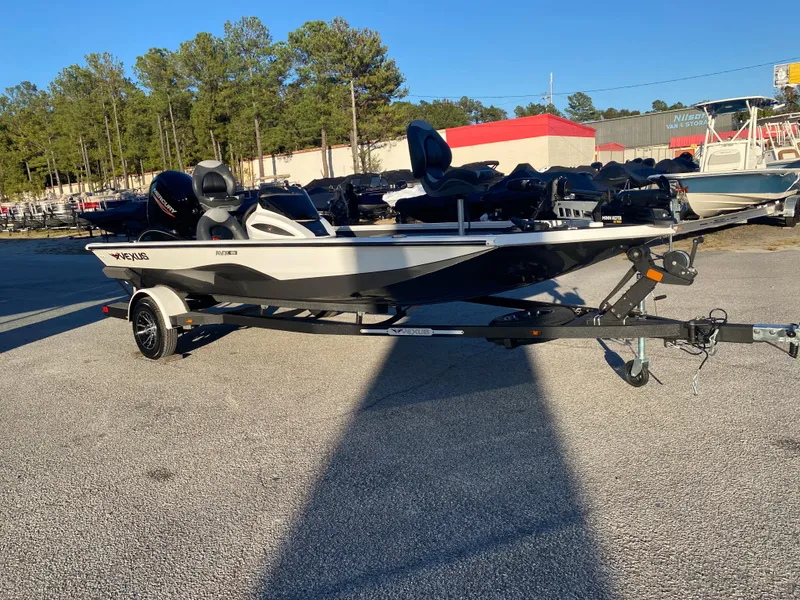 A mid-sized rig with a wide-open design and a full list of standard features - that's the AVX181. Priced to perform and destined to deliver, this fish-focused machine enjoys a broad, ultra-stable 94" beam with huge weather-sealed storages, large casting platforms, and a world of room in the cockpit. Inside, smooth hydraulic steering centers the helm, while a 26-gallon fuel capacity and choice of 60-75hp outboards provide the ideal blend of acceleration and economy. Built into the 18'1" length is an 8' rod box, 3-across seat bases, and an aerated livewell/baitwell up front. Another tournament grade well with divider and pump-out centers the rear deck. Instrumentation includes speed, tach, fuel, trim, and water pressure gauges, plus, the factory-rigged layout features a Minn Kota Ultrex trolling motor, Dual Pro charger, integrated LED bow lights, and Humminbird fish finder electronics.