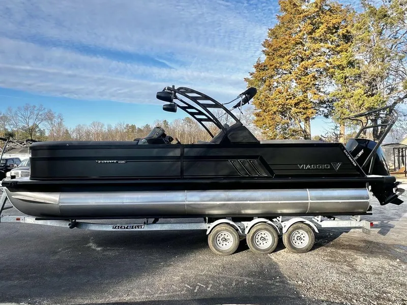 Viaggio's Diamante Series is the flagship boat of our line-up and completely unique against the competition. With our exclusive matte metallic fencing and custom extruded 3? rails, this boat stands alone in the market. Luxury, individuality, a look that will rival even the highest end brands on the water. This unit consists of all standard features of the Diamante model (including a Playpen Cover) plus options of Xtreme Ski Tow Bar (Black), Fender Clips, Gussi Italia Steering Wheel, Saltwater Upgrade, Pontoon Side Keels, In-Tube Ski Storage Locker, RGB Exterior Package, Flint Lakeport Plank Flooring, Power Assist Steering, Attic Arch Tower, Tetrapad for Ski Tow Bar, Inflatable Air Station, Flag Pole Kit, Exterior Tower Speakers, Exterior Speaker Package, Simrad NSX 12 Upgrade, In-Chaise Trash Receptacle, Anthracite Furniture with Cool Touch & Black Painted Helm, and Gas Assisted Seat Pedestal! Priced with an industry leading 300HP Mercury 4-Stroke Outboard, this boat is equipped with this motor. Trailer is additional. Motor pictured may or may not be the one that is included with this price. Please refer to ad details or contact us for more information. Experience our flagship product, where style meets performance! Featuring unrivaled luxurious amenities, endless color/decor combinations, and the pinnacle of technological innovation. The Diamante sets the standard for luxury pontoon boats. Features may include: * 0.100 Aluminum Metal Tubes * 3" Black Anodized Rails * Viaggio Sharp Angled Aft Rails * Extended Splash Deflectors * Rail Caps Around All Door Openings for Seamless Design * Integrated Corner Cap Navigation and Docking Lights * Rubber Bumper Trim * Black Anodized Side Skirting * 2' Extended Swim Deck * Stainless Flip-up Cleats * Luxury Woven Vinyl Flooring * Luxury Vinyl Furniture * Simrad NSX9 Digital Display System w/ 5" Viaggio Digital Gauges * Backlit Dash and Buttons on Helm * Gussi Italia Luxury Adjustable Steering Wheel * Cooled/Heated Cupholder on Helm * RGB Interior Lighting Package * JL Audio Speaker Display System with Amp and Subwoofer * Wireless Phone Charging * High-Contour, Recliner Captain Chair w/ Swivel & Slider * Gas Assisted Pedestal Seating * Hands Free Hinge on Flip-up Seat Cushions * Floatable Table * Stainless Steel Cup Holders * Chrome Courtesy Light * Raised Luxury Decals with Exclusive Graphic Striping * Stainless Steel Retractable Ladder * Premium Canvas Crib Cover * 10' Black Anodized Bimini